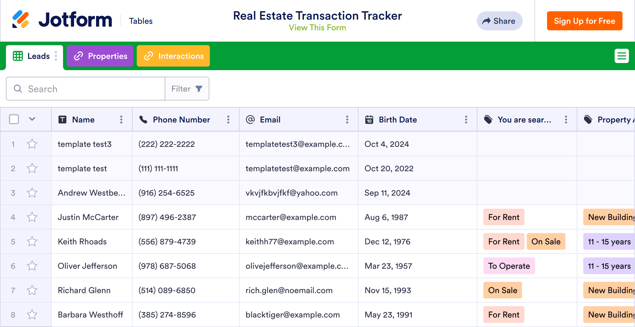 A real estate transaction tracker is used by real estate agents to organize home buying information — like leads, interactions, and properties — to help clients find the perfect houses to call home. Expertly keep track of your clients’ home buying preferences with Jotform’s online Home Buying Checklist! By organizing all information and monitoring the status of home buying leads in a professional spreadsheet, you’ll be organized enough to give your clients the best service possible.