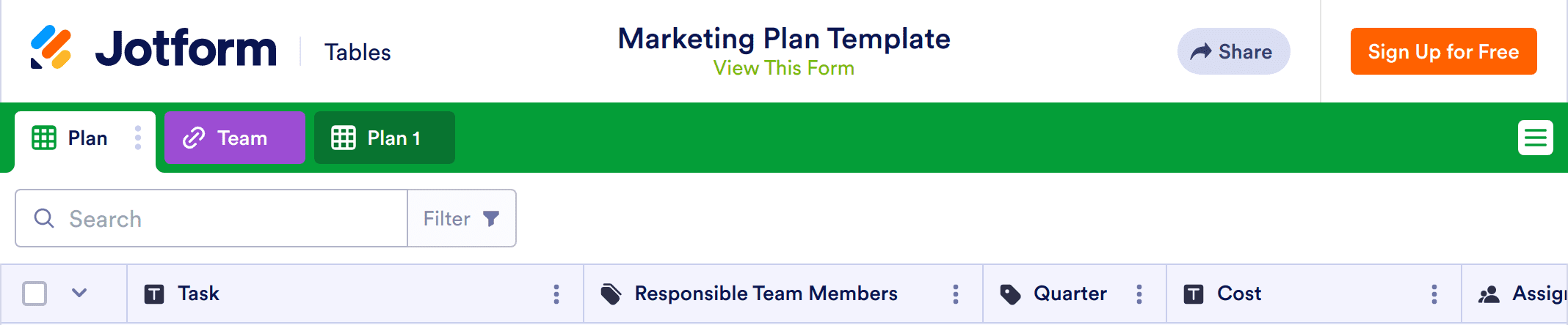 A marketing plan is a document that outlines each item and detail needed to achieve goals set out in a strategic marketing plan. If you manage a marketing team, our free Marketing Plan Template will help you and your teammates keep track of your goals and set them in motion. Start by describing each task, listing start and end dates, and estimating budget costs in the spreadsheet. You’ll be able to view and edit your marketing plan from any device, and you can easily share it with teammates by sharing the template link.