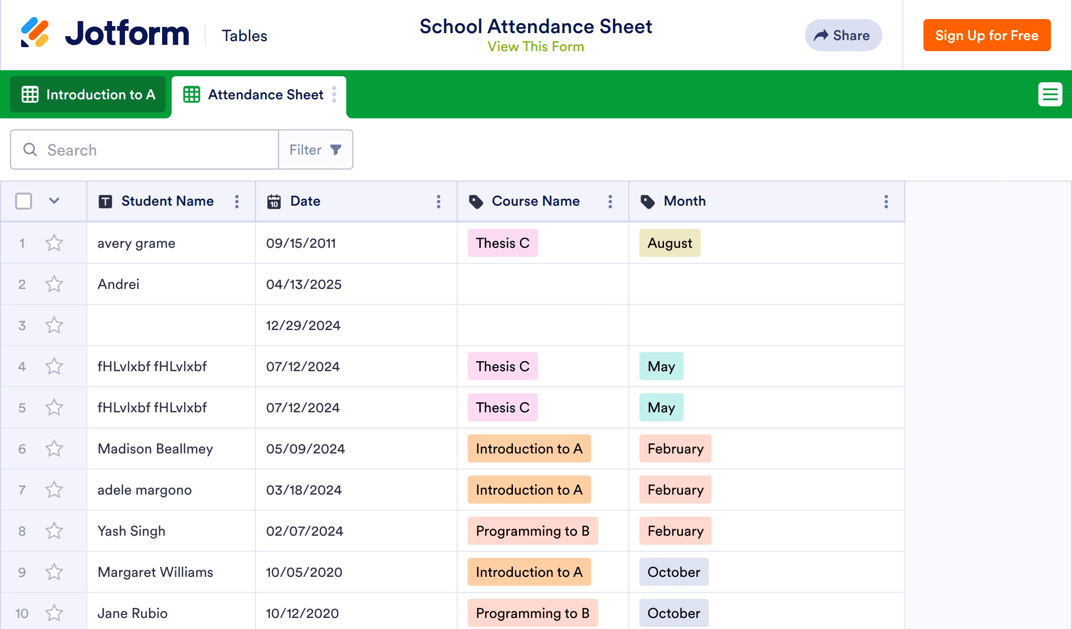 Customizing your School Attendance Sheet doesn’t require any coding — just drag and drop to change label names and colors, create tabs for separate classes, and filter data into groups. You’ll also be able to edit your school attendance form using our intuitive Form Builder. With a custom School Attendance Sheet for your educational institution, you can spend less time taking roll call and more time preparing students for the future.
